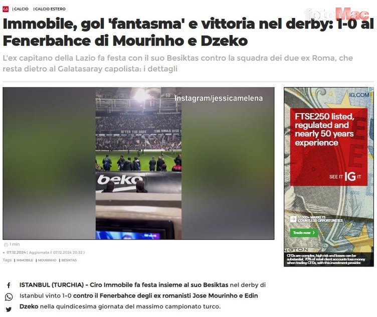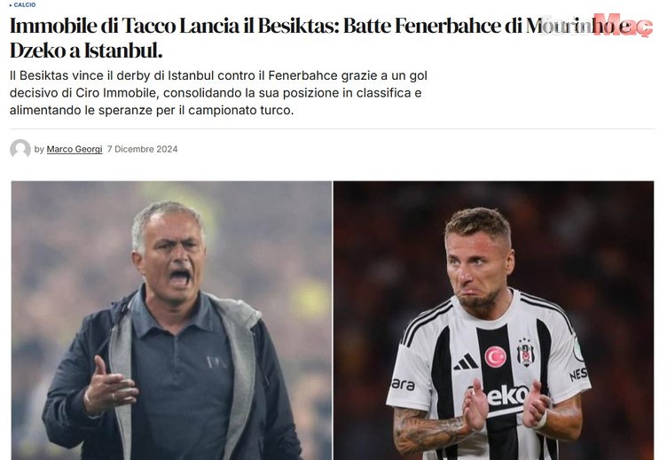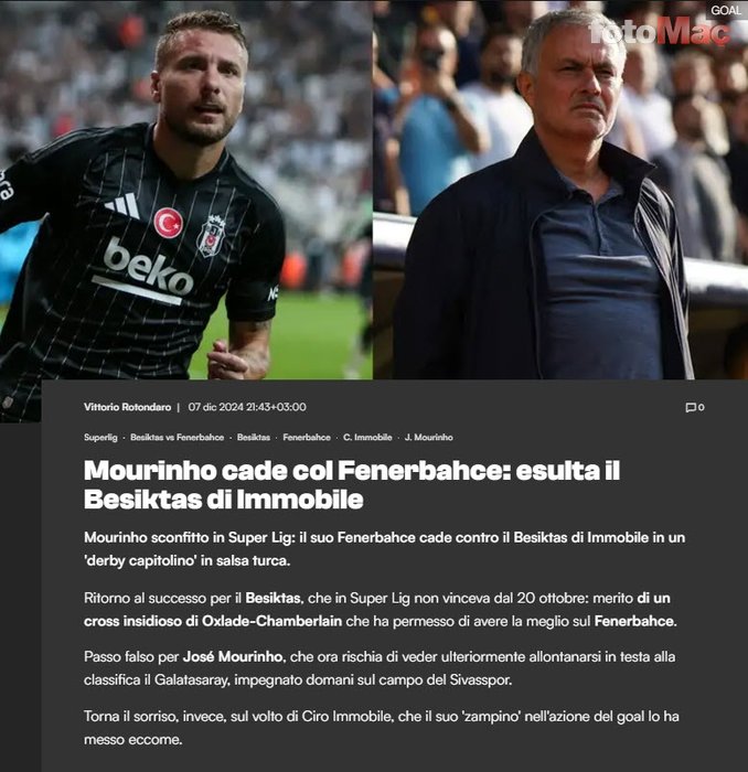 GOAL ITALIA: Mourinho’nun Fenerbahçe’si düştü, Immobile’nin Beşiktaş’ı sevindi
