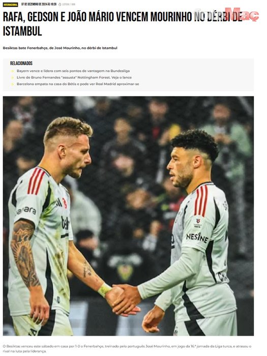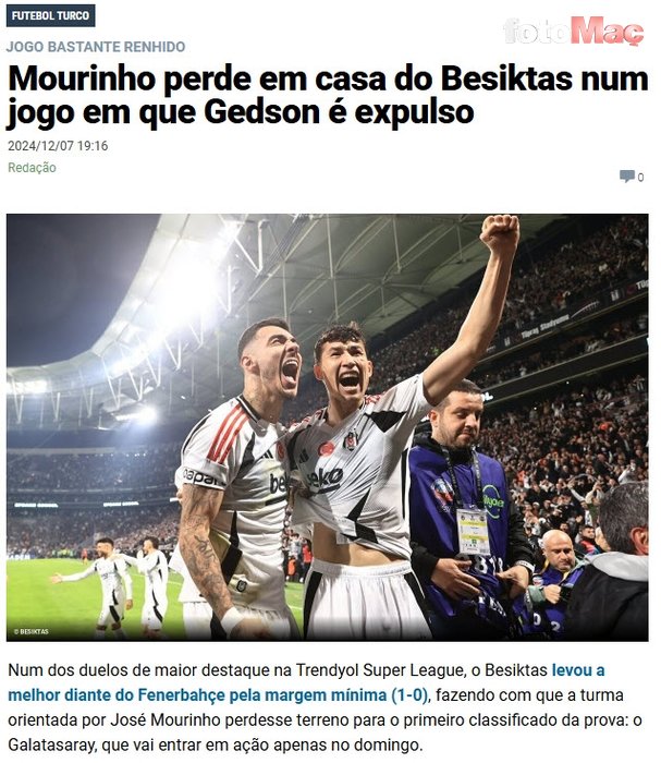 ZEROZERO: Mourinho, Gedson’un atıldığı maçta Beşiktaş’a yenildi