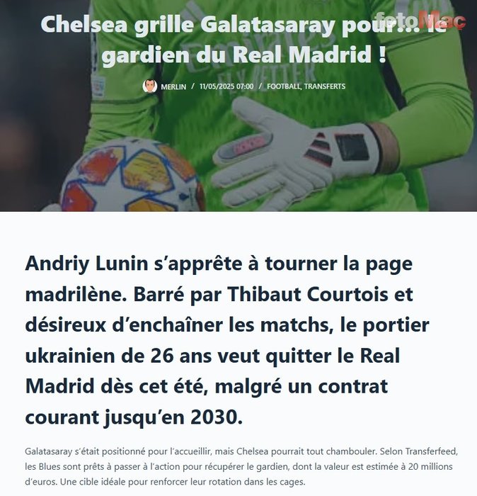 Haberde Lunin’in Real Madrid ile 2030 yılına kadar sözleşmesi olmasına rağmen daha fazla forma şansı bulmak için takımdan ayrılmak istediği belirtildi.