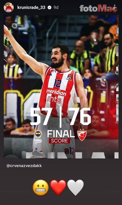 Boşnak futbolcu, THY EuroLeague’in 3. haftasında Kızılyıldız’ın Fenerbahçe Beko’yu mağlup ettiği müsabakanın akabinde bir paylaşım yaptı.