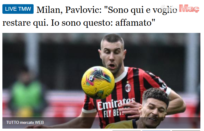 MİLAN’DA KALMAK İSTİYORUM Pavlovic ayrıyeten, “10 maçtır oynamıyorum ve medyada pek çok söylenti dolaşıyor.buradayım ve burada kalmak istiyorum.” sözleri ile transfer söylentilerine karşılık verdi.
