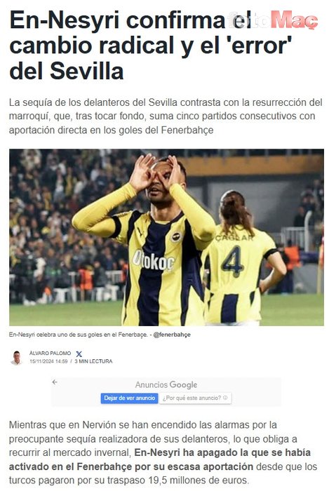Son dakika Fenerbahçe transfer haberleri: Fenerbahçe’nin sezon başında Sevilla’dan rekor bonservis fiyatıyla transfer ettiği Youssef En-Nesyri, sarı-lacivertli formayla istenen başlangıcı yapamasa da son haftalarda yükselen performansıyla dikkatleri çekti. İspanyol basını, Faslı golcüyle ilgili dikkat çeken bir gerçeği açıkladı. İşte ayrıntılar… (fotomac.com.tr/DIŞ HABERLER)