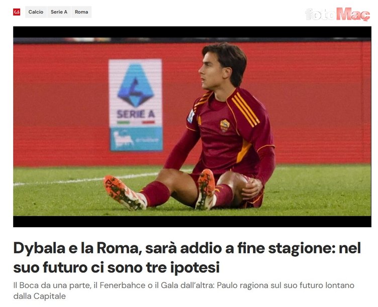 Son dakika transfer haberleri: Sezon sonunda Roma’dan ayrılması beklenen Paulo Dybala için flaş bir iddia ortaya atıldı. İtalyan basını, Fenerbahçe ve Galatasaray’ın Arjantinli yıldızla ilgilendiğini yazarken, 32 yaşındaki futbolcunun İstanbul’a gelmesi halinde alacağı maaşın bile hazır olduğu kaydedildi. İşte detaylar… (fotomac.com.tr/DIŞ HABERLER)