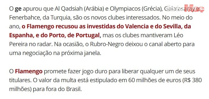 Suudi Arabistan’dan Al Qadsiah, Yunanistan’dan Olympiakos’un ilgisinin yanı sıra, Flamengo’nun sezon ortasında İspanya’dan Valencia ve Sevilla, Portekiz’den Porto’nun tekliflerini geri çevirdiği vurgulandı.