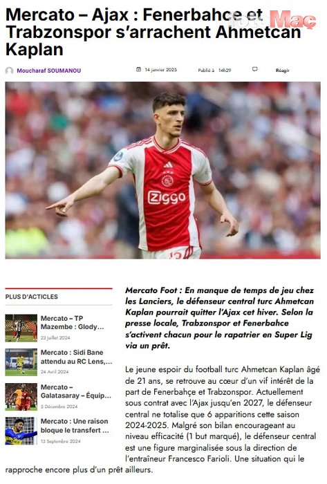 AHMETCAN KAPLAN SAVAŞI Africa Foot United’da yer alan habere göre Fenerbahçe ve Trabzonspor, Ahmetcan Kaplan’ı transfer etmek istiyor.