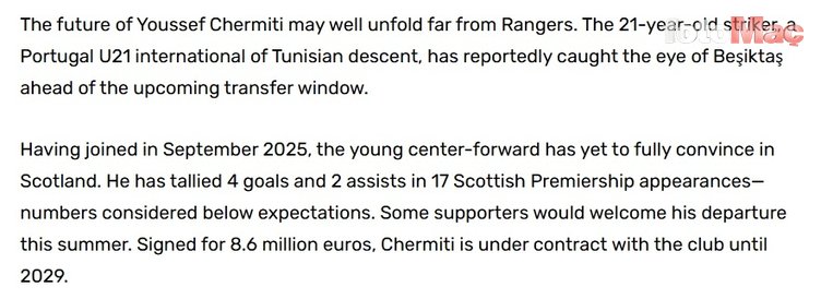 Foot Africa’nın haberine göre siyah-beyazlılar, Rangers forması giyen Youssef Chermiti ile ilgileniyor.