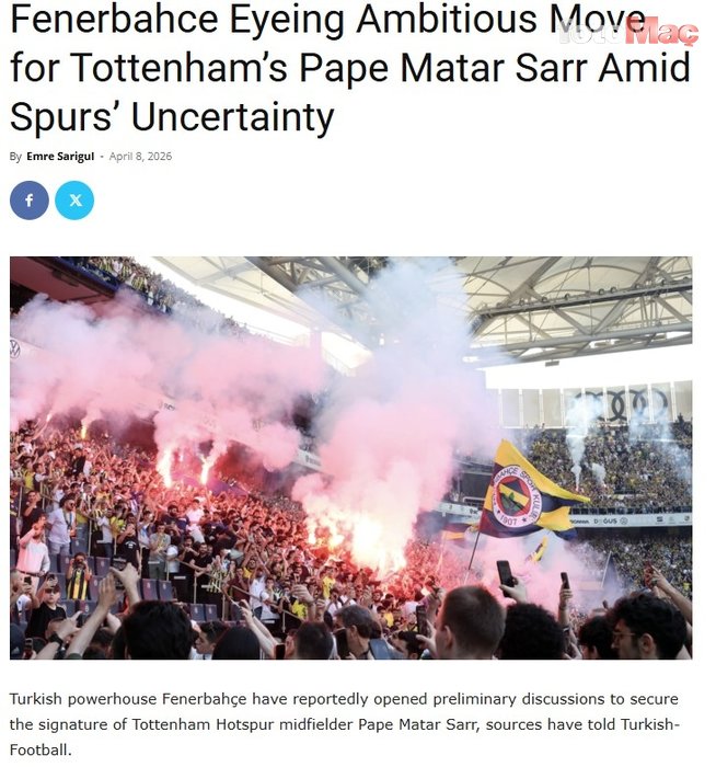 PAPE MATAR SARR İÇİN GÖRÜŞMELER BAŞLADI Turkish-Football kaynaklı haberde; sarı-lacivertliler, Tottenham forması giyen Pape Matar Sarr için görüşmelere başladı.