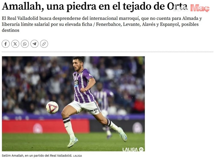 SELIM AMALLAH SÜRPRİZİ İspanyol basını, Fenerbahçe’nin La Liga 2 ekibi Real Valladolid’de forma giyen Selim Amallah ile ilgilendiğini yazdı.