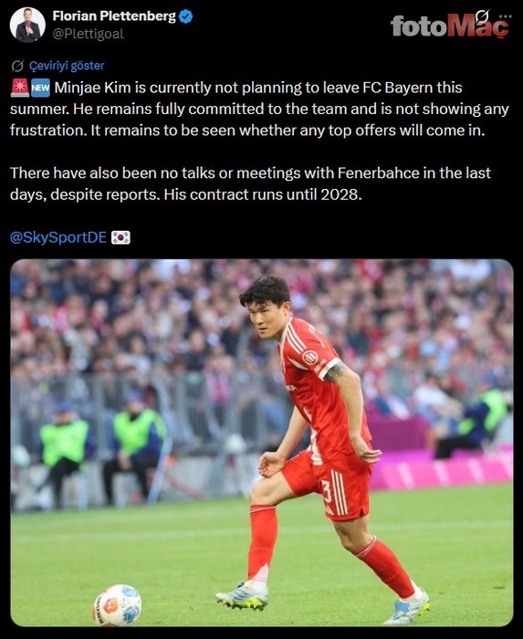 AYRILMAYI PLANLAMIYOR Sky DE muhabiri Florian Plettenberg, Kim Min-Jae’nin bu yaz Bayern Münih’ten ayrılmayı planlamadığını açıkladı.