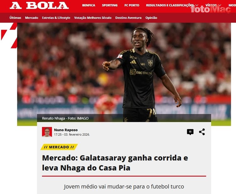 PORTEKİZ BASININI DUYURDU Cimbom’un Nhaga transferi ile ilgili detayları Portekiz’in önde gelen spor gazetelerinden A Bola duyurdu.
