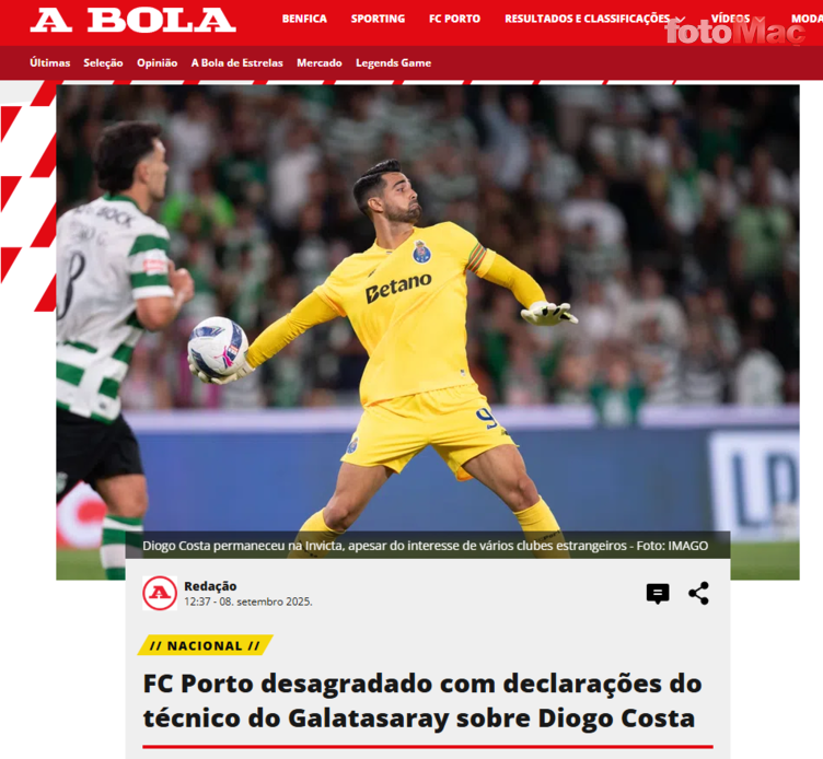 Portekiz kulübünden Buruk’a yanıt geldi… A Bola’da yer alan habere göre; Porto, Okan Buruk’un Diogo Costa için “45 milyon euro istediler” sözlerini yalanlayarak, Galatasaray’a resmi yazı gönderdi ve kalecinin serbest kalma bedelinin 75 milyon euro olduğunu vurguladı.