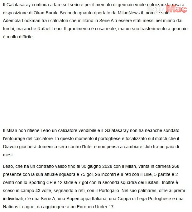 İtalyan basınından Tutto Mercato’da yer alan ve aspor.com.tr editörü Kağan Soytorun’un derlediği habere göre Galatasaray, Milan’ın yıldız futbolcusu Rafael Leao’yu kadrosuna katmak istiyor.