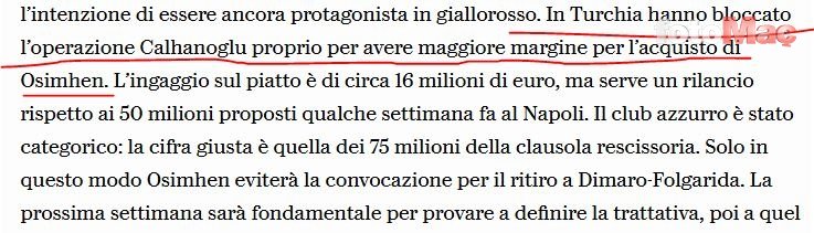 Son olarak transferde flaş bir gelişme yaşandı. İtalyan basınından La Repubblica’nın haberine göre; Galatasaray, Osimhen’in satın alınması için daha fazla harcama yapmamak için Çalhanoğlu transferini durdurdu.