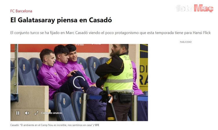 İspanyol basınından sport.es’in haberine göre; Galatasaray, Barcelona forması giyen Marc Casado’yu kadrosuna katmak için harekete geçti.