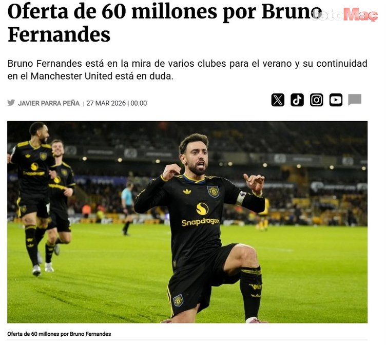 Fichajes kaynaklı haberde, sarı-kırmızılıların 31 yaşındaki futbolcu için 60 milyon Euro teklif edeceği yazıldı.