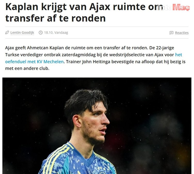 Ajax Teknik Direktörü John Heitinga da yaptığı açıklamada Ahmetcan’a transfer görüşmeleri için izin verdiklerini ve bu nedenle KV Mechelen maçının kadrosuna alınmadığını söyledi.