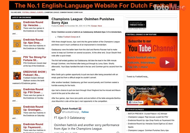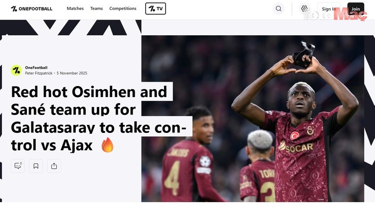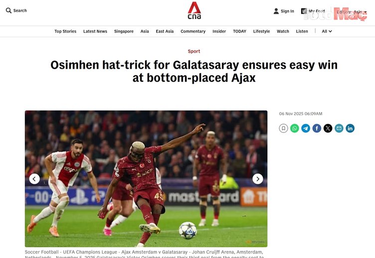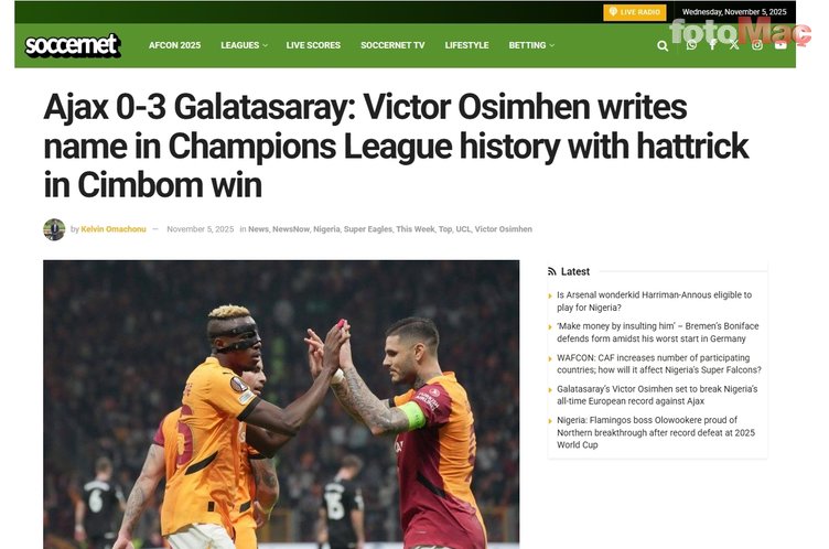 Şampiyonlar Ligi’nin 4. haftasında zorlu Ajax deplasmanına çıkan Galatasaray, Osimhen’in hat-trick yaptığı karşılaşmada sahadan 3-0’lık rahat galibiyetle ayrıldı. Cimbom’un bu zaferi yabancı basında da çok konuşulanlar arasına girdi. İşte Osimhen’in hat-trick başarısı ve Cimbom’un Hollanda’daki galibiyeti sonrası atılan manşetler…