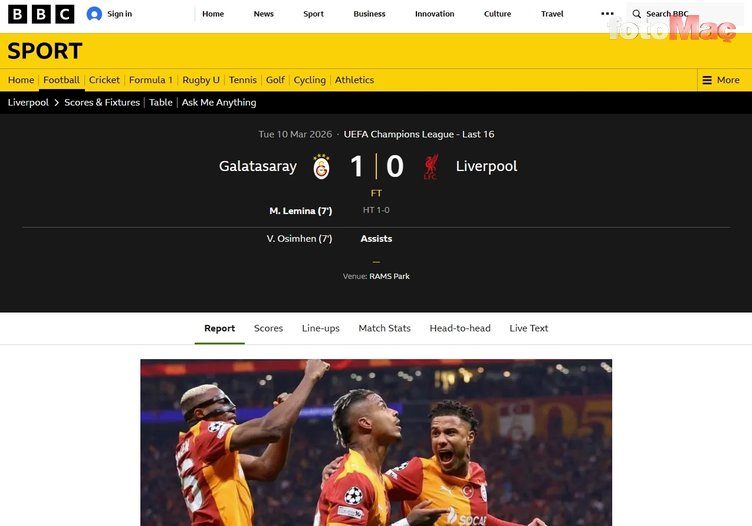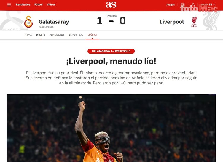 Galatasaray’ın Liverpool’u RAMS Park’ta Lemina’nın golüyle 1-0 mağlup ettiği son 16 turu ilk maçı sonrası yabancı basında “cehennem” vurgusu… İşte dış basında maç sonrası atılan manşetler…