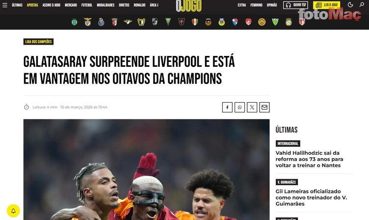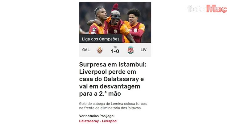 Galatasaray, Liverpool’u şaşırttı ve Şampiyonlar Ligi Son 16 turunda avantajı yakaladı. (O Jogo)