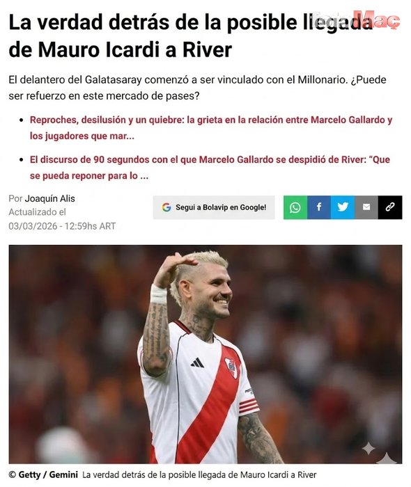 Mauro Icardi’nin sevgilisi China Suarez, geçtiğimiz aylarda yaptığı açıklamada, “Eğer Arjantin’e gelirse River Plate’e gelir. Boca Juniors kesinlikle söz konusu bile değil. Kariyerine karışmıyorum, menajeri değilim ve olmak da istemiyorum. Türkiye’de mutluyum.” ifadelerini kullanmıştı.