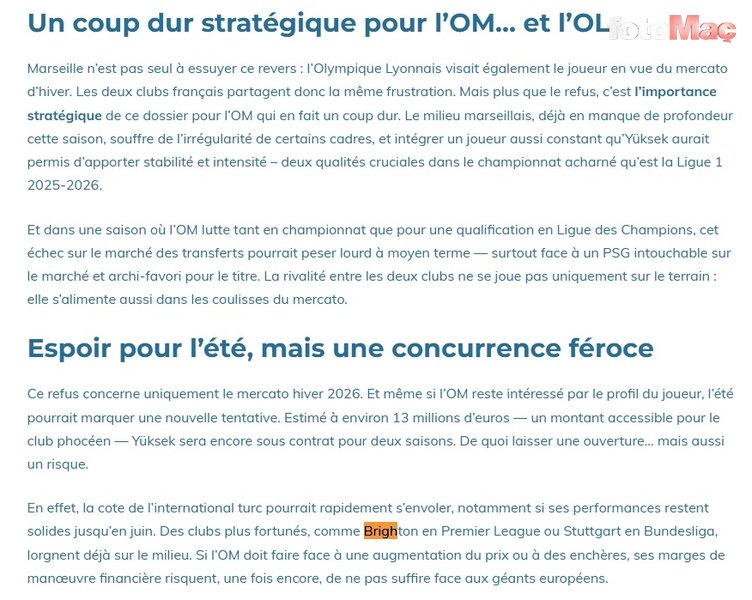 Puissance Marseille’in haberine göre Ligue 1 ekipleri Olympique Marsilya ve Olympique Lyon, kış döneminde kadrolarına katmak istediği İsmail Yüksek için girişimlerini yaz ayına sarkıtmak zorunda kaldı.