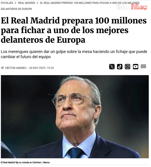 Haberde son olarak Real Madrid’in, Osimhen için Avrupa’nın diğer dev kulüplerinin de devreye girmesi halinde bonservisinin rahatlıkla 100 milyon euroyu aşabileceğini bildiği, Galatasaray’ın da Osimhen’e yaptığı yatırımın fazlasını bile geri alabileceğine inandığı ve bu transferi piyasanın en karlı satışlarından biri haline getirmeyi hedeflediği vurgulandı.