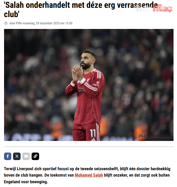 fotomac.com.tr editörü Ömer Çağrı Akdere’nin Belçika basınından derlediği habere göre Salah, ya Liverpool’da kalacak ya da Suudi Arabistan’a transfer olacak. Öte yandan yıldız ismin Süper Lig’e transferinin mümkün olmadığı açıklandı.