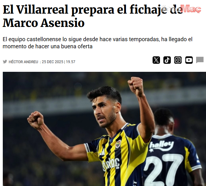 Süper Lig’de Galatasaray ile kıyasıya bir zirve mücadelesi veren Fenerbahçe’nin yıldız ismi Marco Asensio, Avrupa kulüplerinin radarına girmiş durumda. İspanyol basınından Fichajes’in geçtiği habere göre Villarreal, birkaç sezondur takip ettiği Asensio için bu kez ciddi bir teklif hazırlığında.
