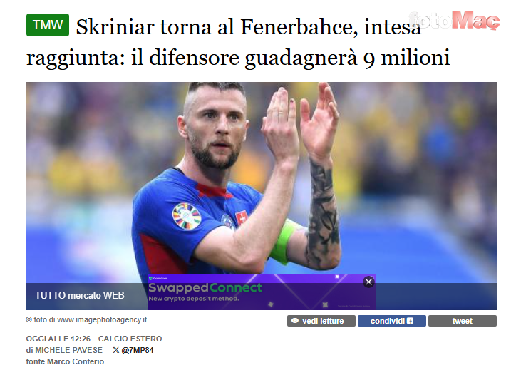 Tutto Mercato’da yer alan haberde Skriniar’ın sarı-lacivertli ekipten sezon başına net 9 milyon euro kazanacağı belirtilirken sözleşme süresi için ise net bir rakam yazılmadı.