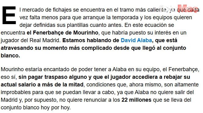 İspanyol basınından Defensa Central’de yer alan haberde Jose Mourinho’nun son dönemde stoper olarak oynayan Avusturyalı oyuncuyu kadrosunda görmekten mutluluk duyacağı aktarıldı.