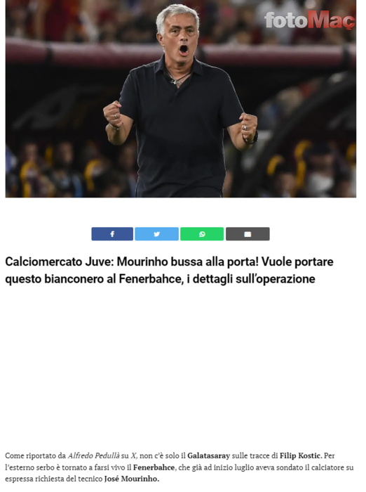 MOURINHO KOSTIC İÇİN DEVREDE Fotomac.com.tr editörü Enes Cevahirci’nin İtalyan basınından derlediği habere göre; Jose Mourinho Kostic’i Fenerbahçe’ye getirmek istiyor.