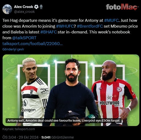 OCAK AYINDA AYRILIYOR İngiliz basını, teknik yönetici Erik cilt Hag’ın misyonuna son verilmesinin akabinde Antony’nin de ocak ayında takımdan ayrılacağını yazdı.