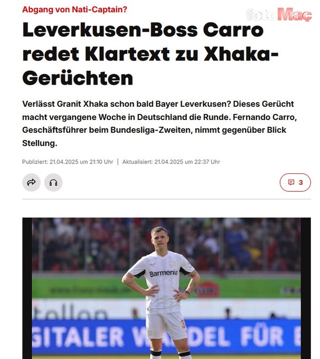 Güncel piyasa kıymeti 17 milyon Euro olan Xhaka’nın, kulübüyle olan kontratı 2028’de bitecek.
