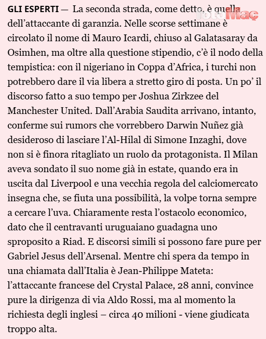 İtalyan devinin listesinde ayrıca Al Hilal forması giyen Darwin Nunez de yer alıyor. Ancak Uruguaylı golcünün yüksek maaşının Milan için önemli bir engel oluşturduğu vurgulandı.