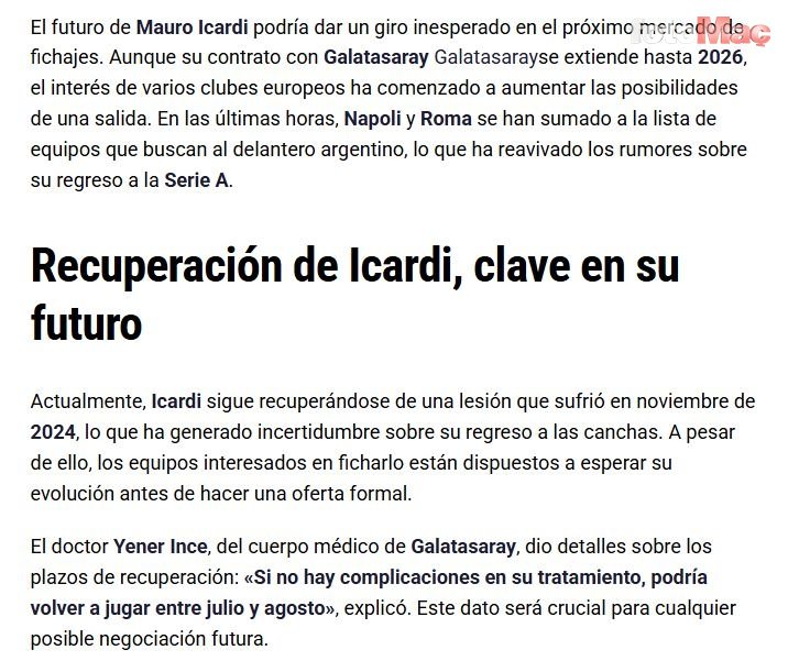 Aspor.com.tr editörü Enes Arslan’ın İspanyol basından derlediği habere göre Napoli, Roma, Real Sociedad ve Girona, Mauro Icardi’yi transfer listesine aldı.