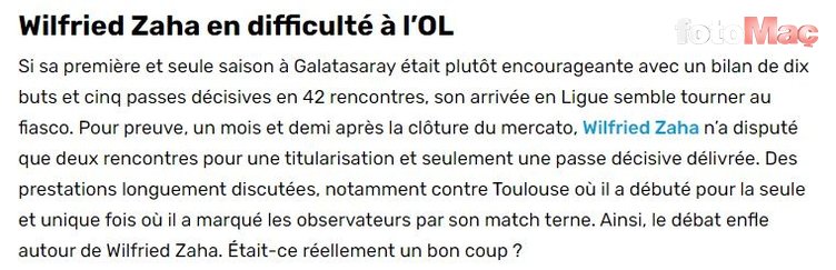 Yeni sezonda Galatasaray’dan, Fransız ekibi Olympique Lyon’a kiralık olarak transfer olan Wilfried Zaha burada da aradığını bulamadı. Formsuz durumu nedeniyle takım dışı kalan oyuncu hakkında yurt dışında flaş tenkitlere yer verildi. İşte o sözler…